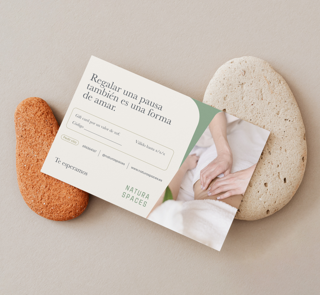 La tarjeta regalo de Natura Spaces es una invitación a parar y dedicarse un momento de bienestar, en cualquier momento del año.